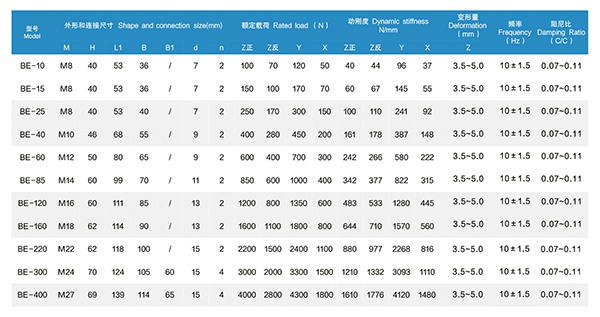 BE型橡膠減振器的外形尺寸和安裝尺寸與E型、EA型橡膠隔振器相同,便于更新互換。
